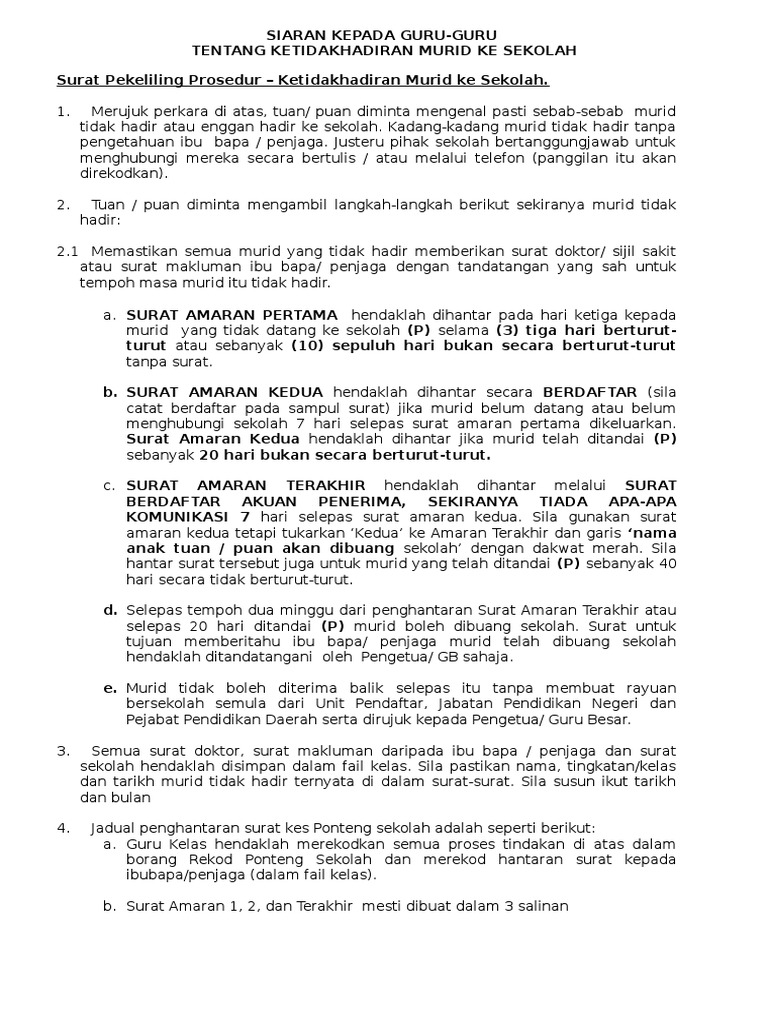 Surat Siaran Kpd Guru Tentang Ketidakhadiran Murid Pdf